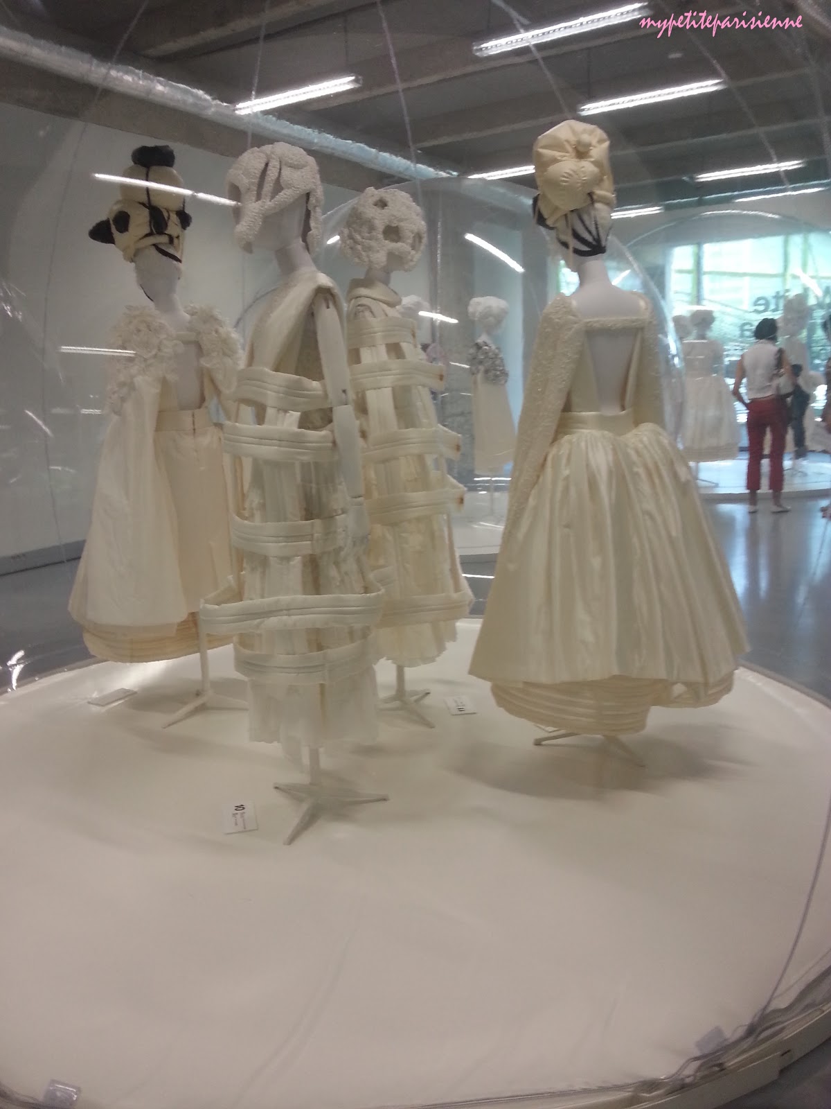 Dépaysement assuré sur Comme des Garçons qui raconte l’histoire de la vie et de la mort, enfin différentes étapes de la vie, à travers les vêtements. Je n’ai pas accroché, même si les vêtements sont originaux, ornés de dentelles, et de noeuds. Par contre j’aime bien l’idée des bulles ^^
