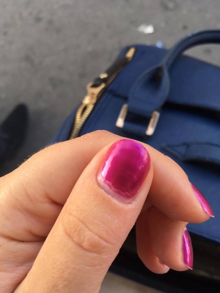 J’ai choisi un rose irisé qui me semblait plutôt sympa, sur l’ongle ça fait un peu moins comme je l’imaginais mais soit.