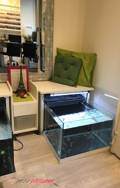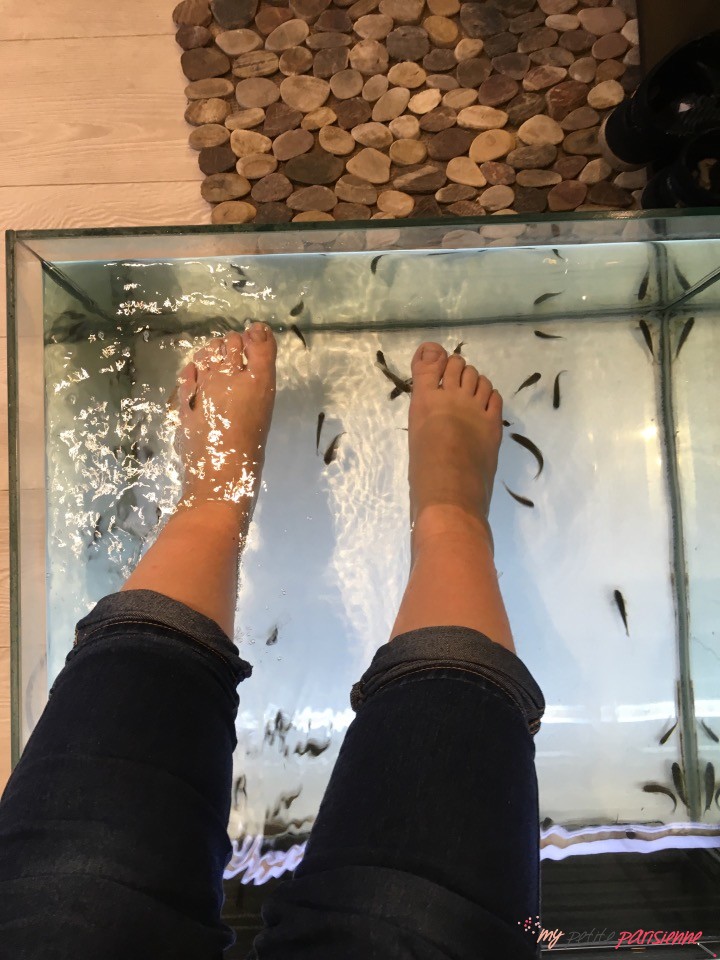 La fish-pedicure est quelque chose qui me tentais depuis un moment mais je n’ai pas eu l’occasion d’en faire une avant. J’avais peur que les poissons n’aient pas faim, qu’ils ne sont pas aux normes ou que sais-je, j’avais la trouille. Je voulais une adresse sans risque.